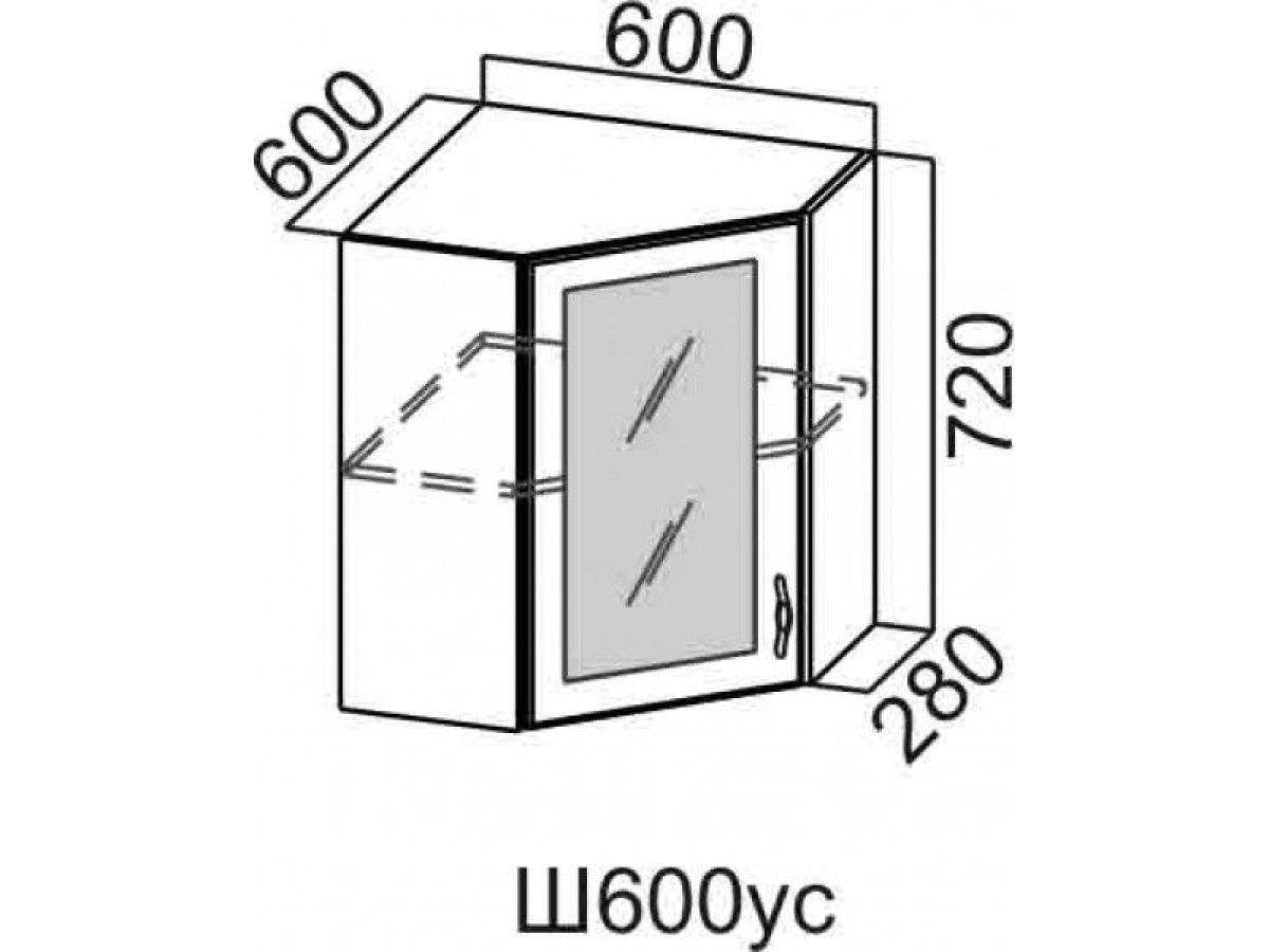 Шкаф навесной угловой со стеклом Ш600ус (КГ Вектор) Акция